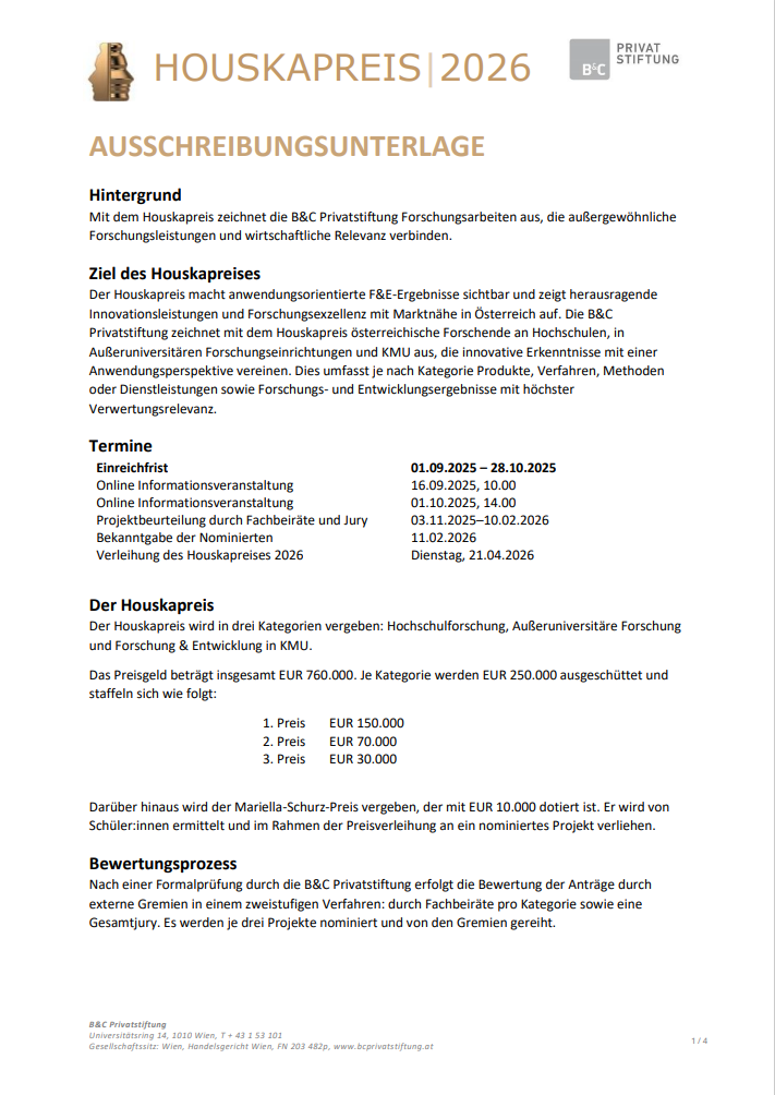 Houskapreis 2026 Ausschreibungsunterlage
