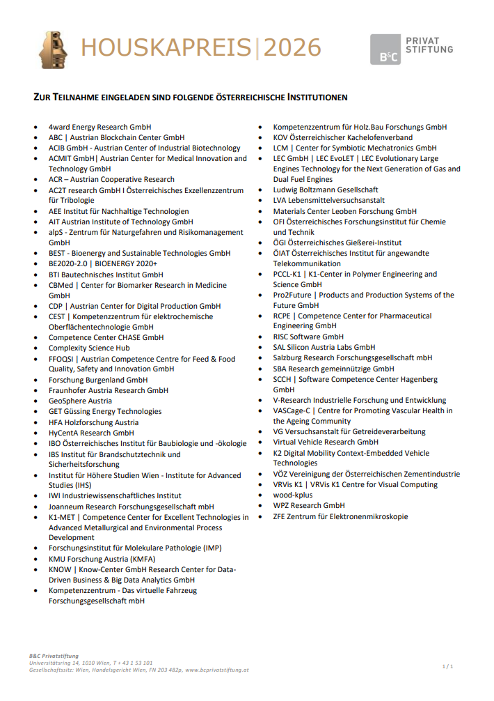 Houskapreis 2026 Einreichberechtigte Außeruniversitäre Forschung