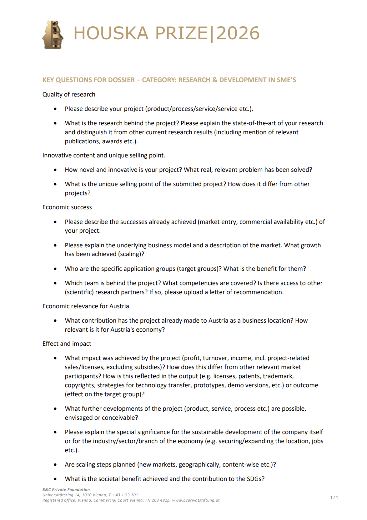 Houska Prize 2026 – Dossier Questions KMU